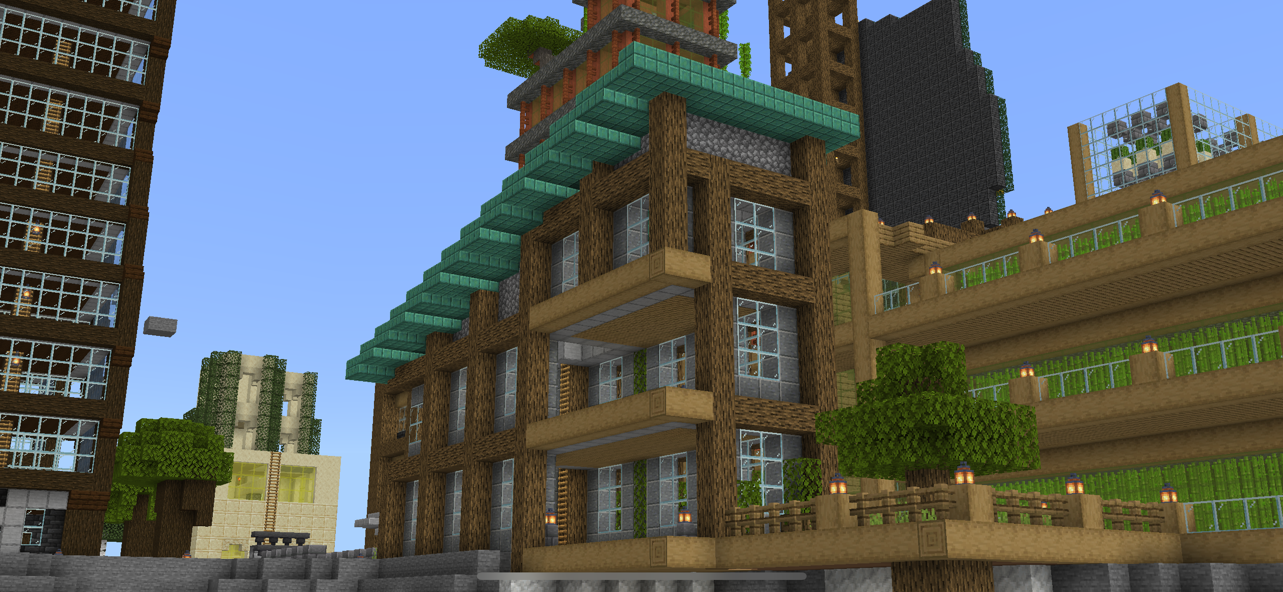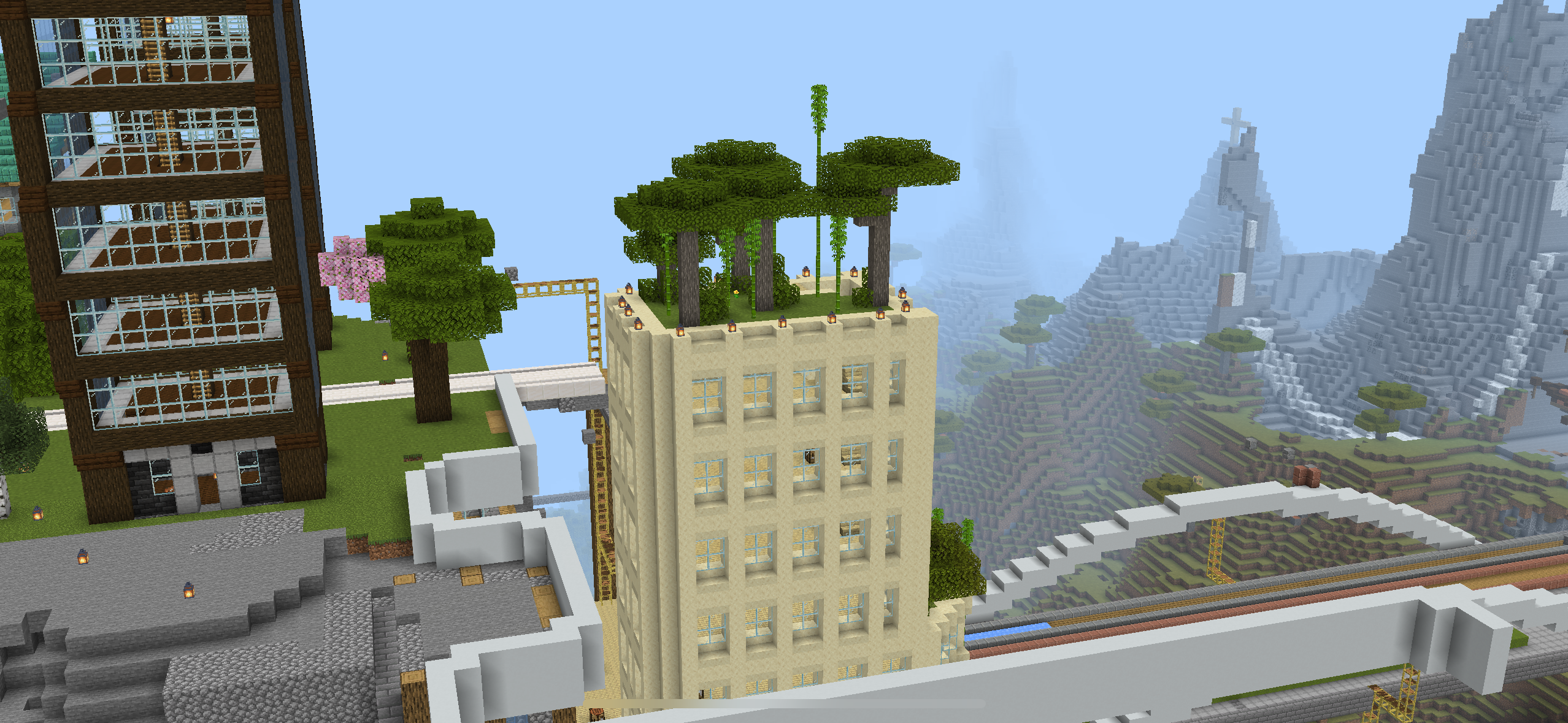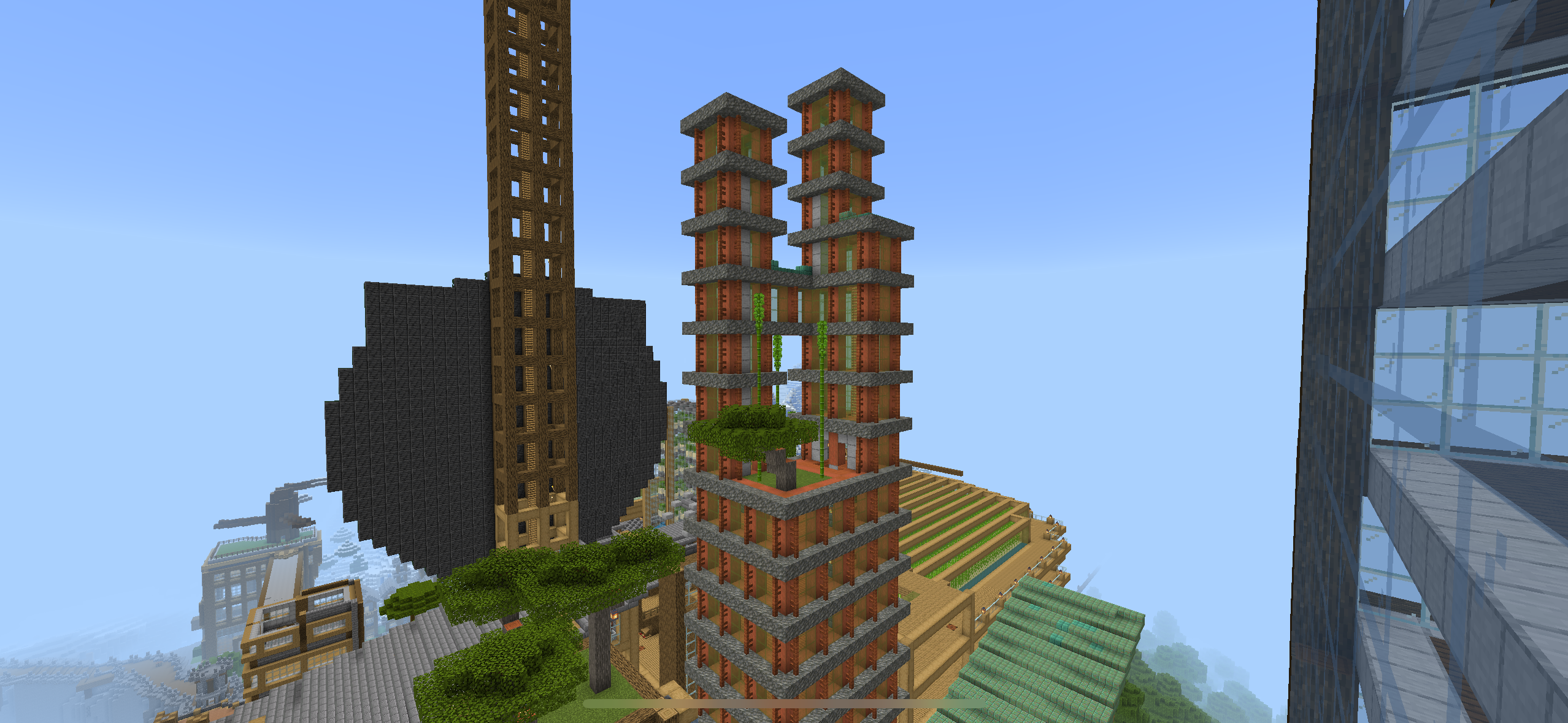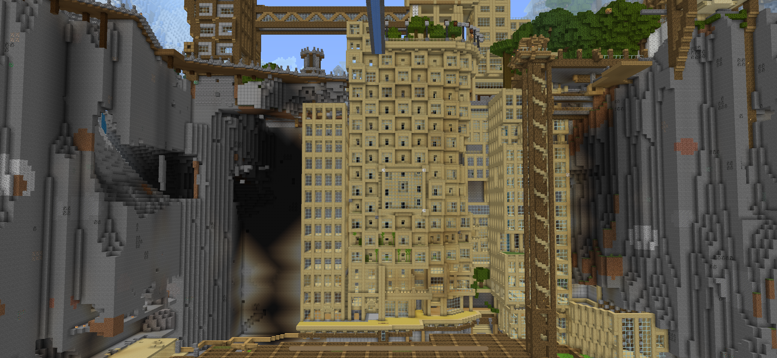 A complex vertical city constructed in Minecraft!