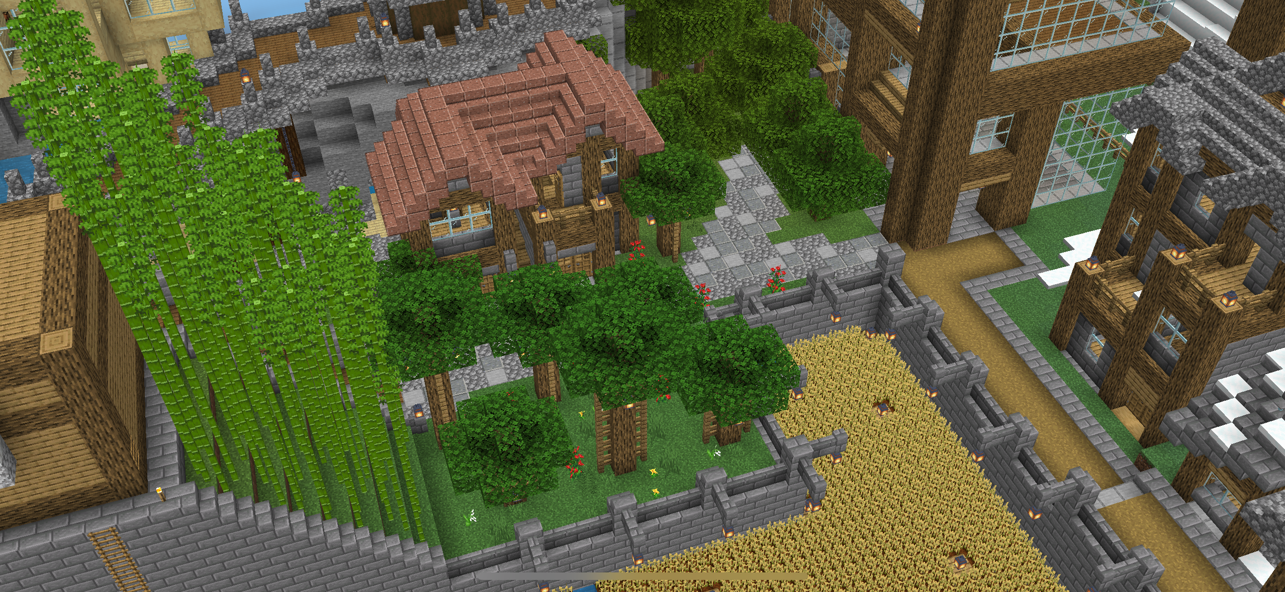 All creations below were built in survival mode where you are bounded by gravity and navigate the world from a first person perspective.